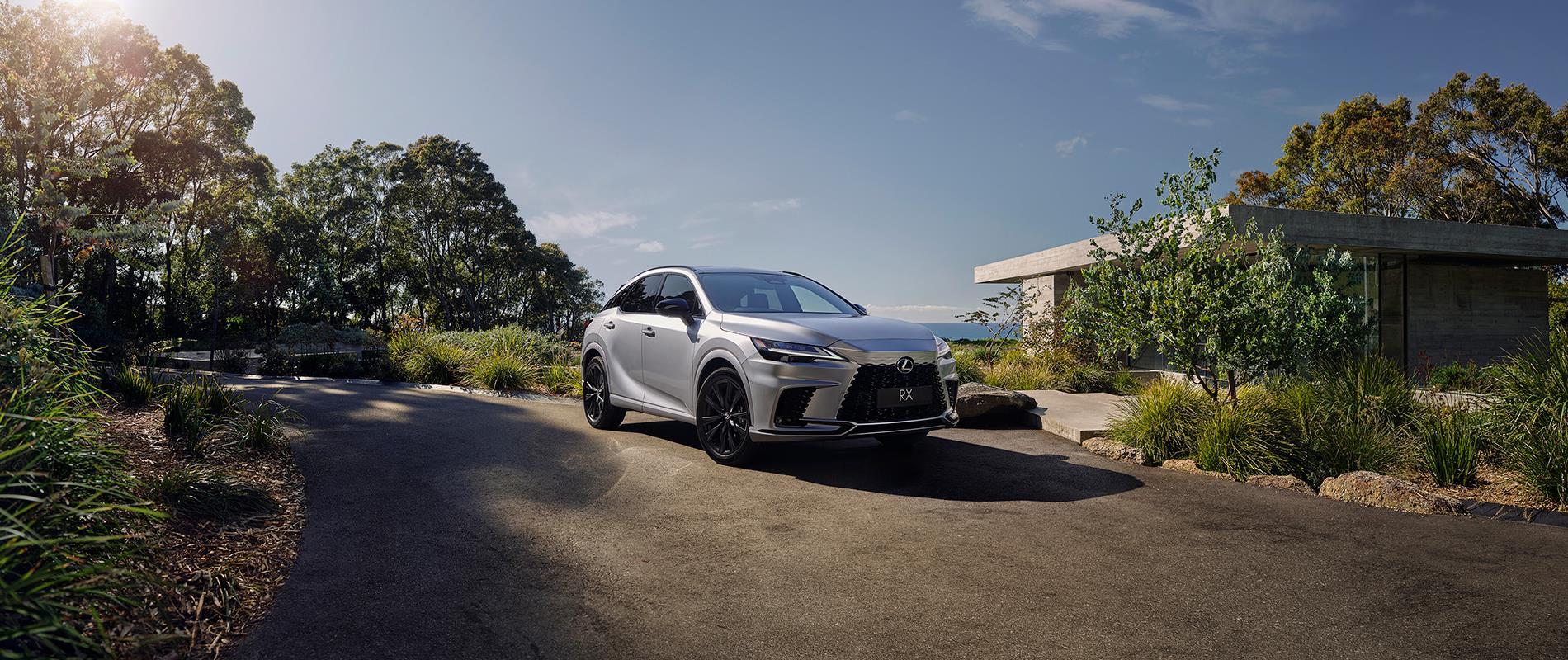 La 5a generazione di RX mostra un'immensa presenza su strada. Lo sguardo è catturato dal nuovo design della carrozzeria "a clessidra", dal cofano allungato e dai grandi cerchi da 21". La nuova caratteristica griglia si fonde con l'anteriore dell'auto e i fari a triplo LED.
